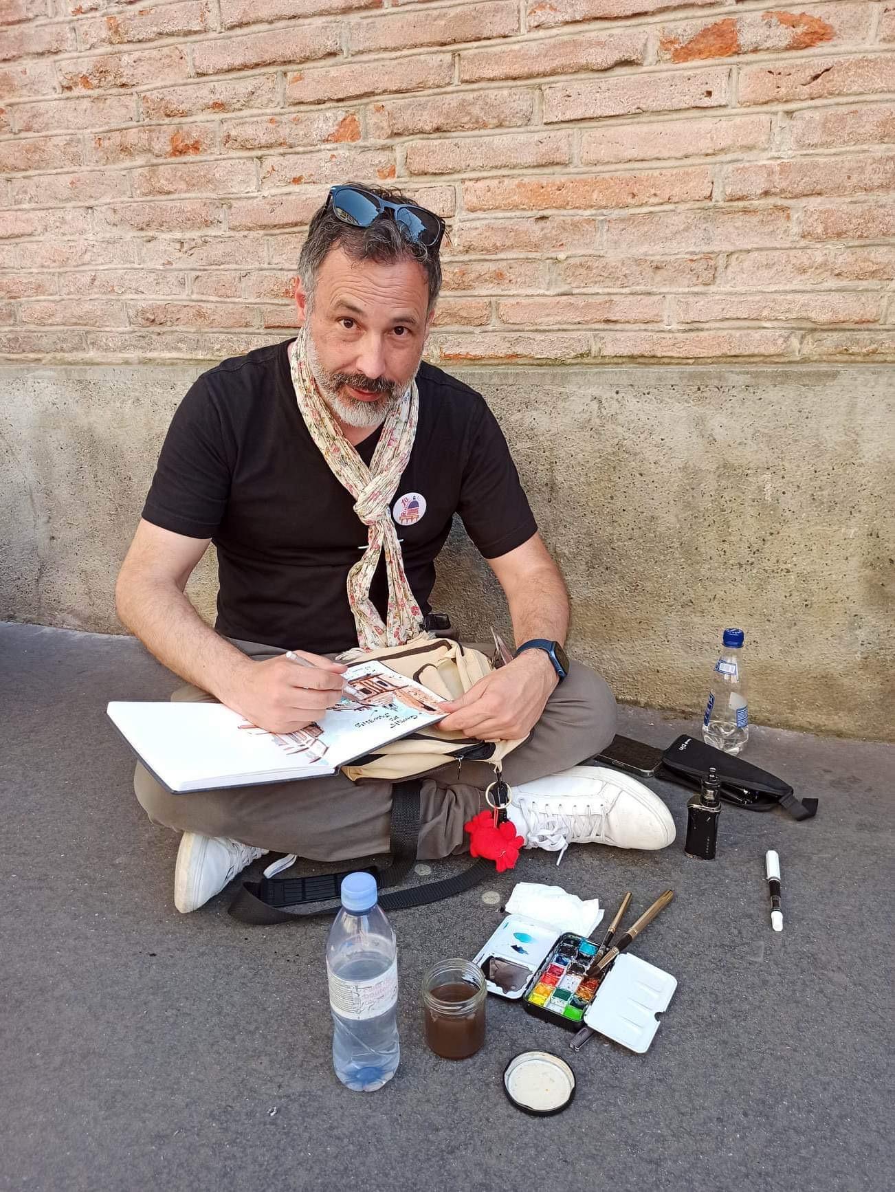 Adolescent, je noircissais mes cahiers avec des croquis de temples romains, des détails de colonnes, de sculptures antiques… J’inventais aussi des personnages de BD. J’ai pratiqué plusieurs techniques par la suite : la peinture à l’huile, figurative et abstraite, le modèle vivant à l’encre, au feutre, fusain, sanguine, crayon. Mais l’envie de croquer in situ dans des carnets ma vision de la ville, des rues, de l’architecture, des monuments remarquables ou des édifices moins célèbres me trottait depuis longtemps dans la tête. J’ai franchi le pas en 2018. Une vraie révélation !